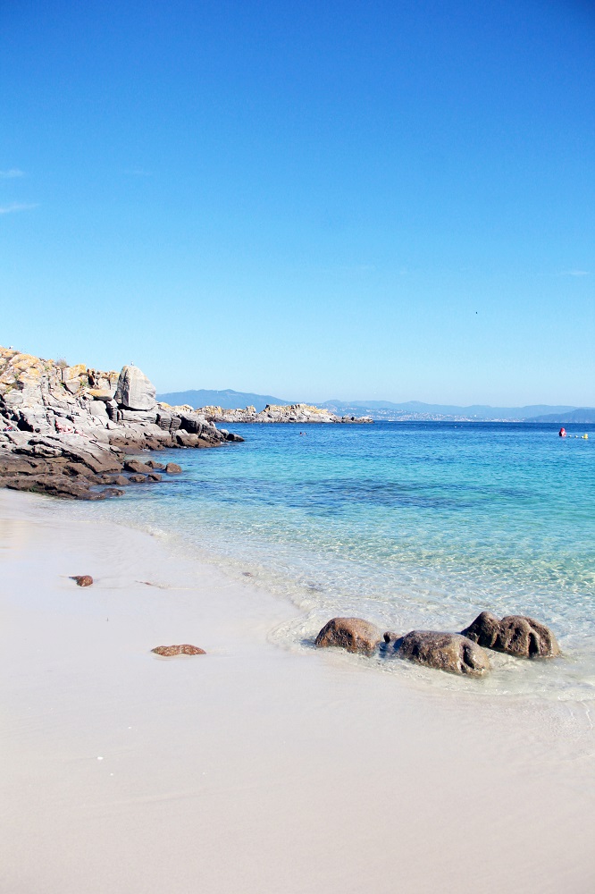 No post anterior já falei da Praia de Rodas, considerada pelo jornal The Guardian como uma das mais bonitas do mundo. É uma zona bonita para ir a banhos, se bem que é a praia que geralmente se encontra mais cheia, uma vez que fica próxima do cais onde atracam os barcos. Contudo, o areal de mais de um quilómetro de dimensão permite usufruir desta praia em sossego. Mais uma vez ressalvo, durante as férias não senti nenhum sintoma de multidão nesta praia. Foi super agradável passar parte das tardes neste areal e ver o por de sol a varrer a praia, deixando para trás o continente.